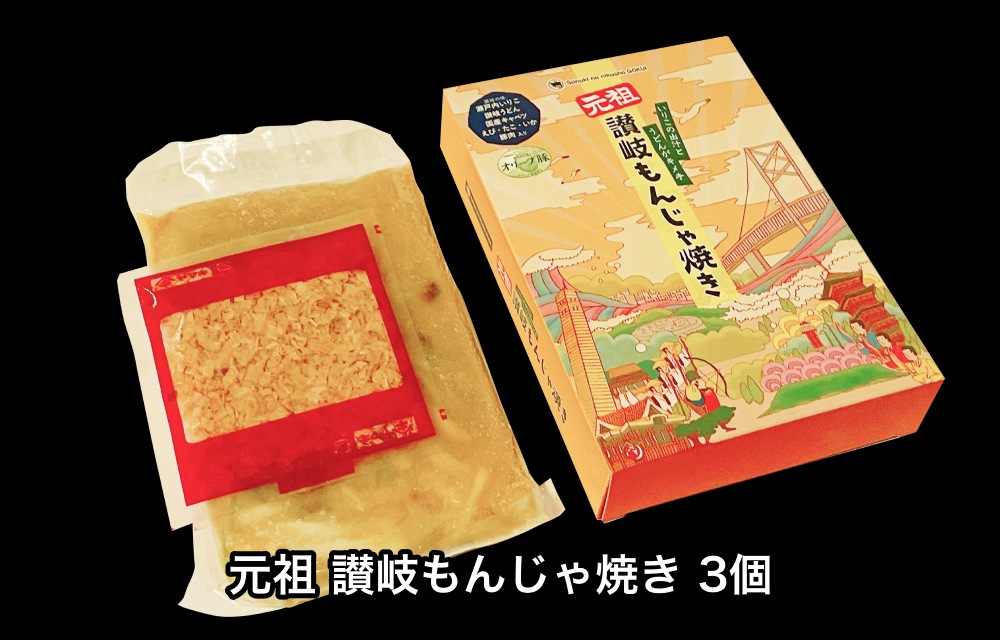 満喫!讃岐もんじゃ焼き3個セット(元祖1・明太子1・牛すじ1)